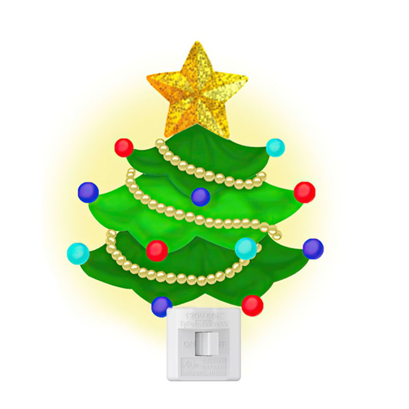 A Plug In Christmas Tree Night Light is a small decorative light fixture designed to resemble a Christmas tree. It is designed to be plugged into an electrical outlet for power. The night light emits a soft, warm glow, providing a festive and cozy ambiance. It is often used as a decorative accent on mantles, shelves, or bedside tables during the holiday season. The compact size and plug-in design make it convenient and easy to use.